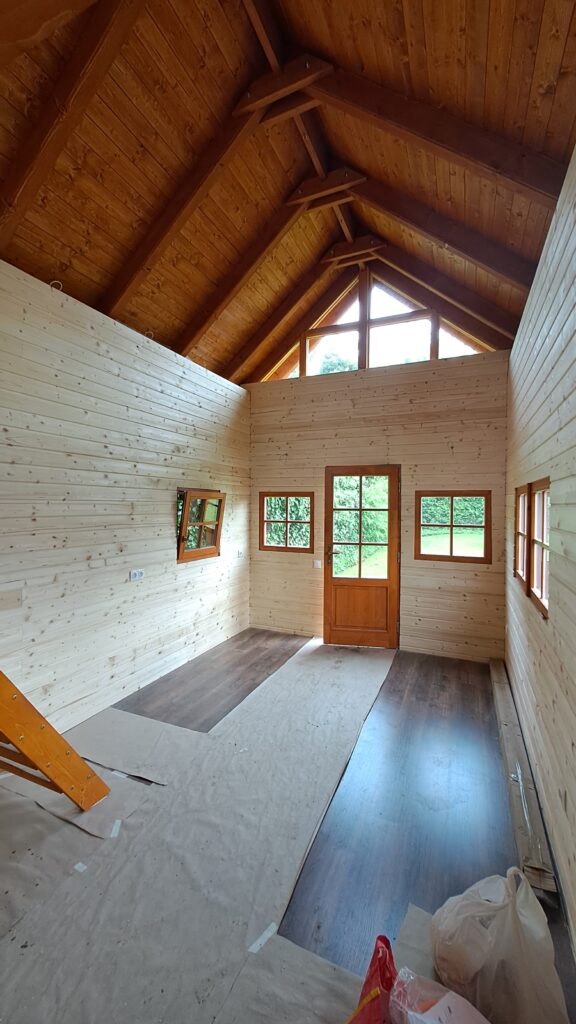Falak, tető, nyílászárók, villanyszerelés és vízvezeték előszerelve
